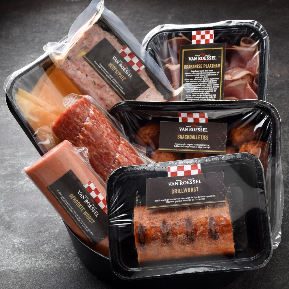 Een pakket met specials van onze delicatessenafdeling, zoals Brabantse plaatham, boerenmetworst, seizoenspate, snackballetjes, grillworst, gekookte worst en Beemster XO. Heerlijk voor bij de borrel.
